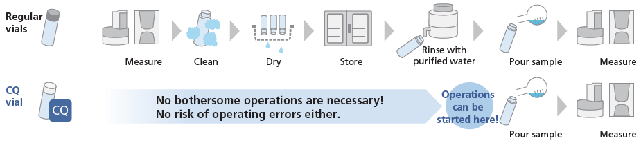 - CQ vial are pre-cleaned. They can be used immediately after opening the box.